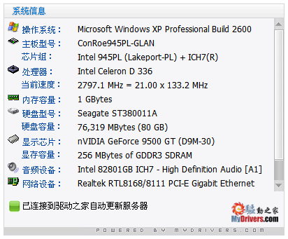 主界面右側(cè)區(qū)域是驅(qū)動(dòng)精靈的新功能:硬件檢測(cè)。 它可告知您的計(jì)算機(jī)具體配置狀況,包括處理器、內(nèi)存、主板、顯卡、聲卡、網(wǎng)卡等硬件信息一目了然。在以后的版本中此功能將會(huì)得到擴(kuò)充,您可以查看更多的硬件信息,對(duì)您的硬件了如指掌。
