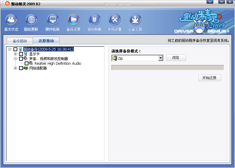 至于備份和還原功能,則是驅(qū)動(dòng)精靈2008版本就提供的實(shí)用功能。您可對(duì)本機(jī)現(xiàn)有的驅(qū)動(dòng)進(jìn)行備份,在適當(dāng)?shù)臅r(shí)候進(jìn)行還原。